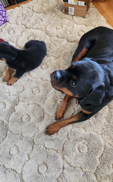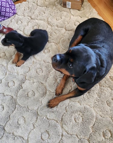 Meet Kojak, the spirited pure bred Rottweiler pup born on Pearl Harbor Day 2024! Even though he once had the loving guidance of his big sister, Xena, who crossed the rainbow bridge in October 2025, Kojak is navigating the world with his puppy heart wide open. Uniquely, this little guy boasts a full tail—quite an uncommon trait for his breed! While he's tackling some fun challenges like not turning the furniture into his chew toys, managing the urge to shred every cloth in sight, and resisting the temptation of those oh-so-tasty socks and washcloths, his stubborn Rottweiler nature can sometimes land him in a bit of mischief. Follow along as we share the joyful adventures and everyday moments of our brave little hero, who's learning life lessons one paw at a time!